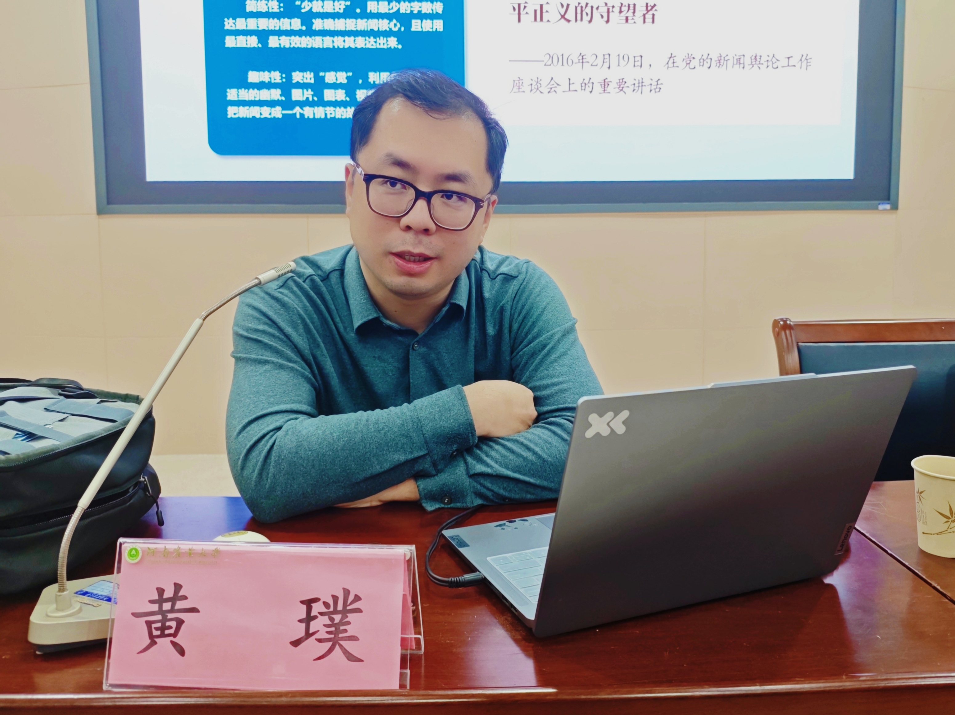 于300人报告厅举办新闻宣传能力培训会。校党委宣传部新闻宣传科科长黄璞老师受邀担任主讲,学院宣传队伍师生骨干和24、25级本科生班委参加,会议由组织员陈翔主持。