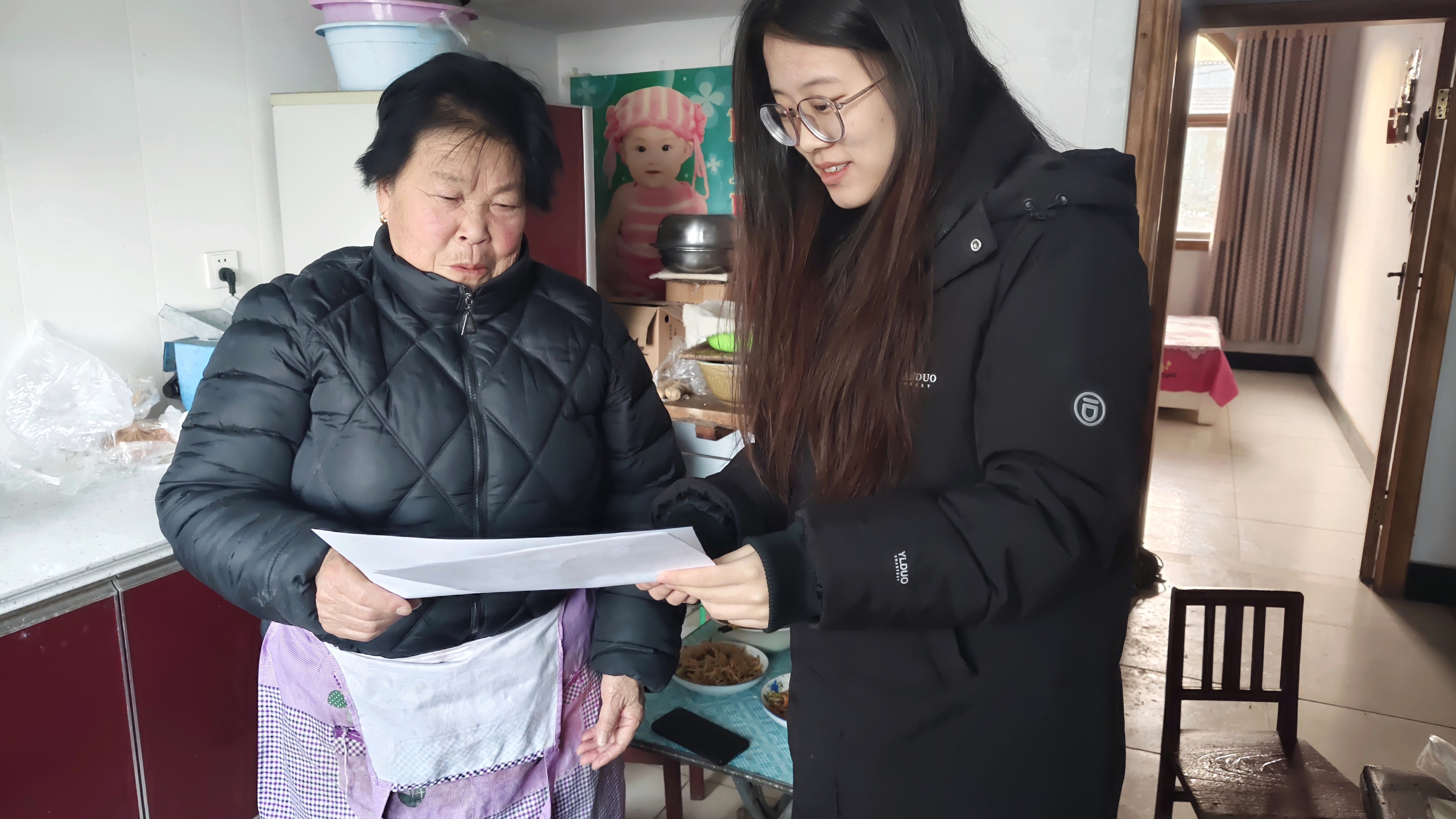 24级食工一班王姝婷回到老家,关注春节传统美食的保鲜问题。想用专业知识帮乡亲们解决枣馍、炸丸子易变质的困扰,实践中却发现自己在被“教”——讲面团发酵时,奶奶一块盖布既保温又保湿,恰好契合发酵原理;讲咸菜腌制时,乡亲们“无油无水、适量用盐”的老经验,比课本更实用。这场科普,是输出,也是学习。
