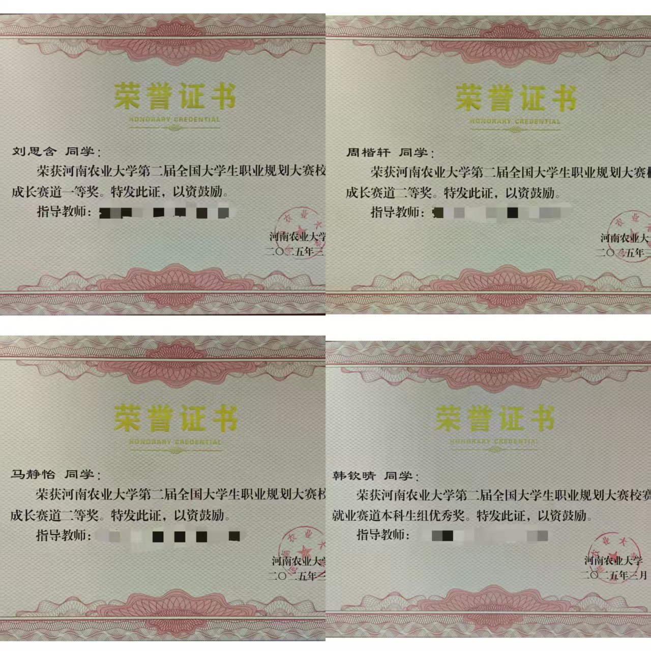 职业生涯规划大赛面向全院学生举办,帮助学生结合专业特点和个人兴趣规划未来发展路径,提升就业创业能力,促进学生在校期间有针对性地提升综合素质,并斩获职业规划大赛校级一等奖1项,二等奖2项,三等奖1项,第二届全国大学生职业规划大赛河南省铜奖1项。