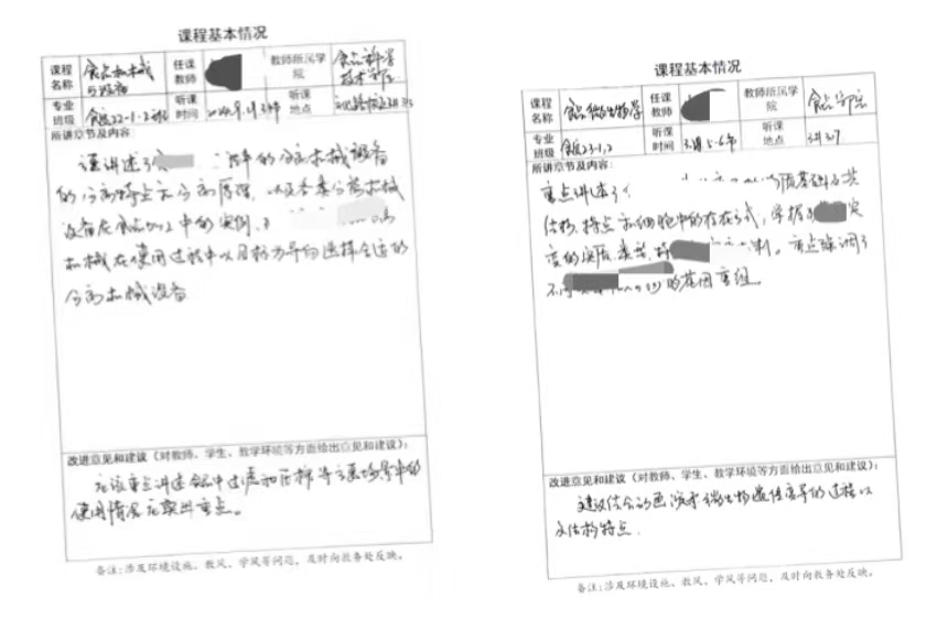 院领导老师听课记录 课堂考勤