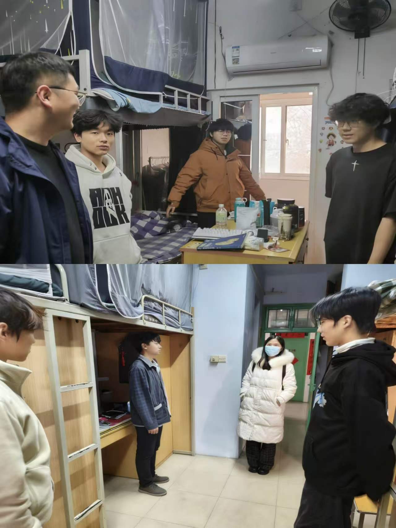 老师们重点排查宿舍消防安全隐患,对大功率电器使用、私拉乱接电线等问题逐项检查,现场督促整改。同时,结合假期安全注意事项,提醒同学们注意出行交通安全、增强反诈防骗意识,离校前锁好门窗、妥善保管贵重物品,做到文明祭扫、平安返乡。走访过程中,老师们还关切询问了同学们的学习生活状态,鼓励大家合理规划假期时间。