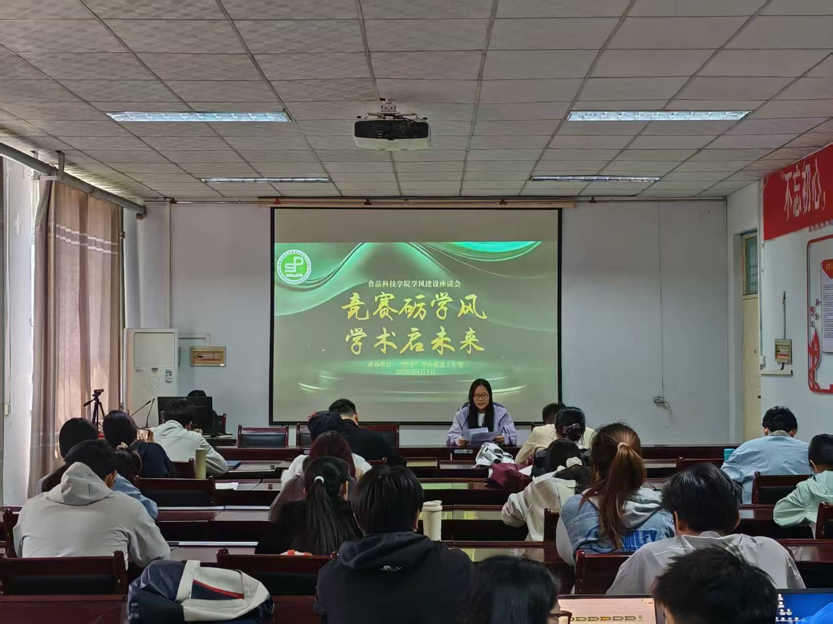 在17号楼405室举办“竞赛砺学风,学术启未来”学风建设座谈会。团委书记张金龙、辅导员张雨及2024级、2025级各班学习委员参加。
