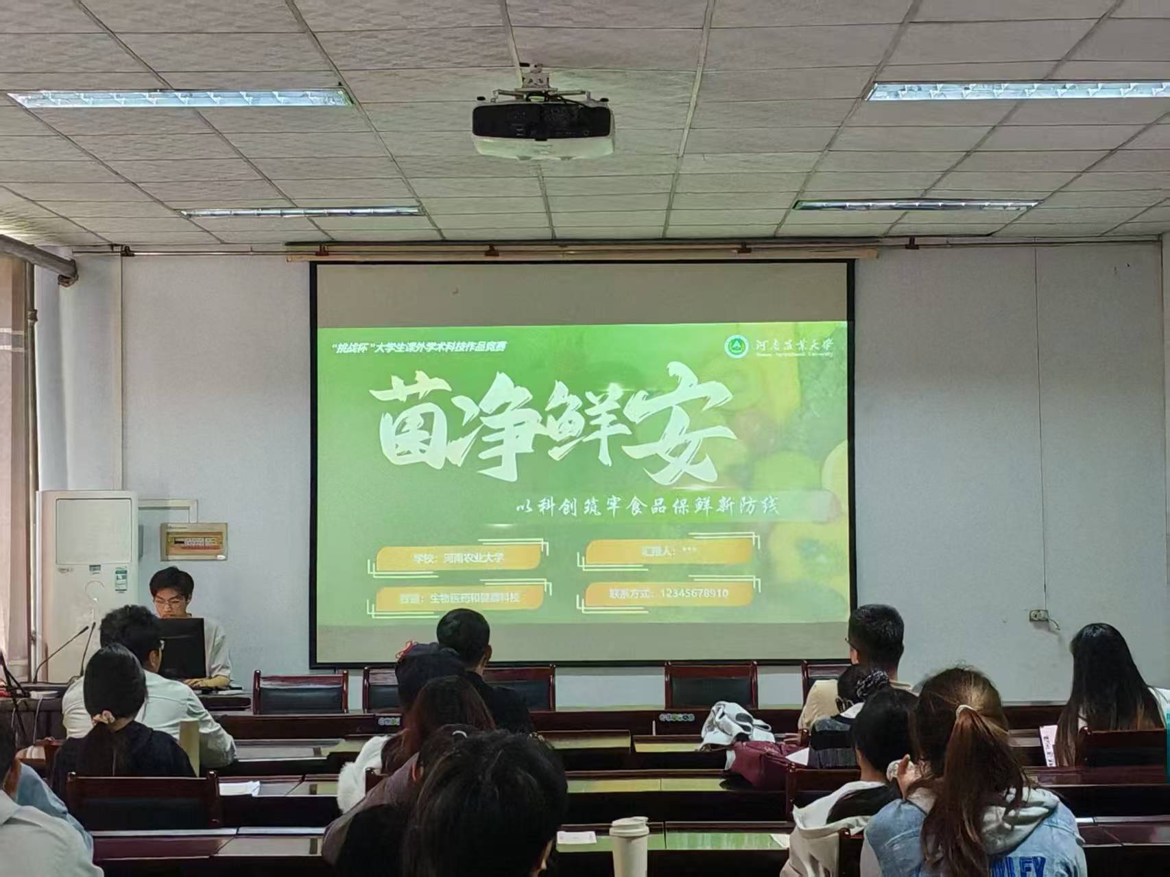 座谈会还邀请往届国赛优秀项目团队依次进行路演展示,围绕食品保鲜技术创新等内容,完整呈现了项目背景、技术亮点、市场分析及商业模式,帮助低年级同学直观了解学科竞赛的项目构成与汇报风格。