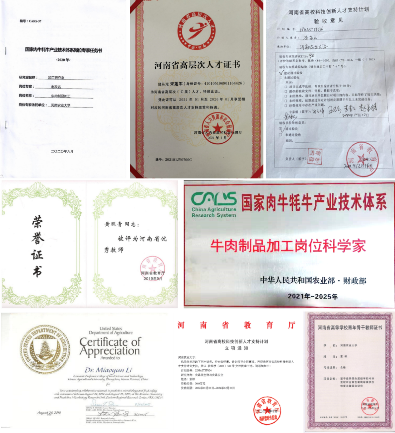 专业建设成果:食品质量与安全专业建设有河南省“食品分析与检验”精品课程、“食品安全控制学”河南省本科教学优秀课程等,完成教研项目4项,主编或副主编规划教材9部。